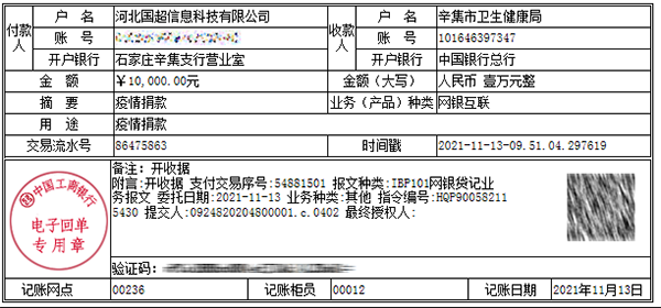 | 病毒無(wú)情,人間有愛(ài)。疫情發(fā)生以來(lái),我公司已向我市疫情防控一線捐贈(zèng)各類(lèi)防疫物資: 方便面185箱 康師傅飲用水185包 棉帳篷2套 一次性醫(yī)用口罩12500只 面包25箱 84消毒液80斤 11月13日,我公司積極擔(dān)當(dāng),服務(wù)社會(huì),切實(shí)履行社會(huì)責(zé)任,向疫情防控機(jī)構(gòu)(辛集市衛(wèi)生健康局)捐款10000元,助力抗擊疫情工作,堅(jiān)決打贏這場(chǎng)疫情防控阻擊戰(zhàn)。